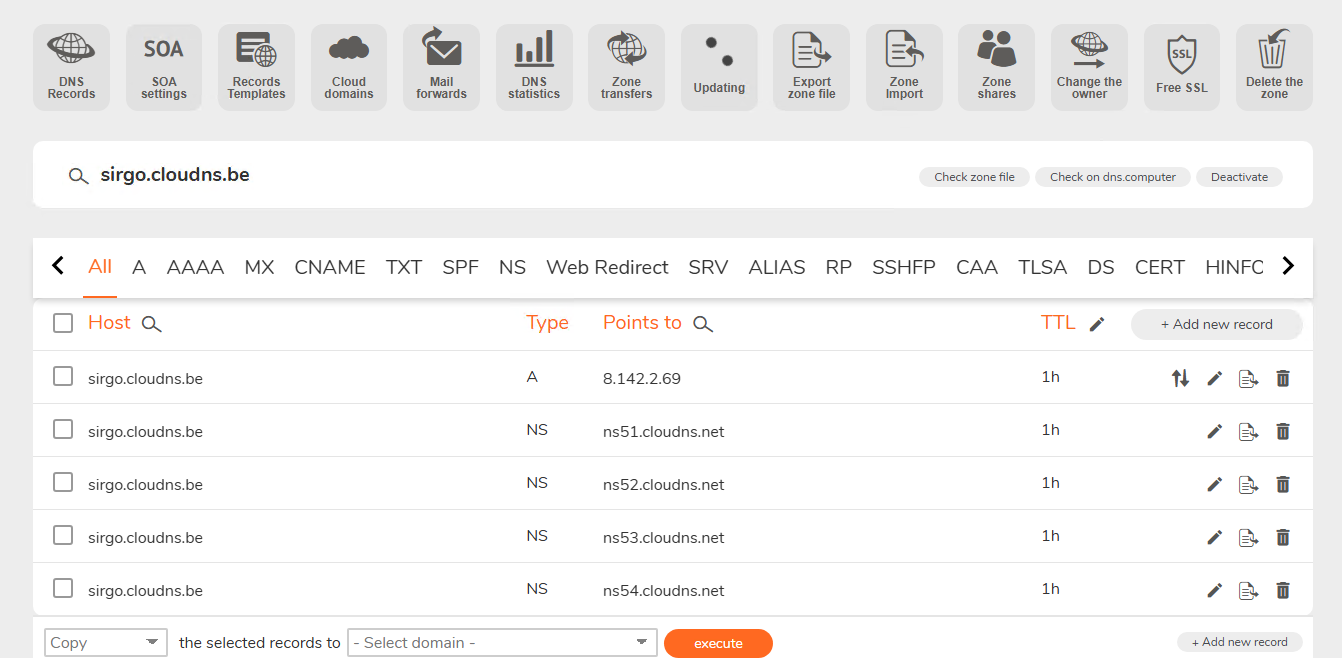 cloudns上的DNS设置