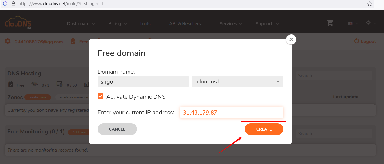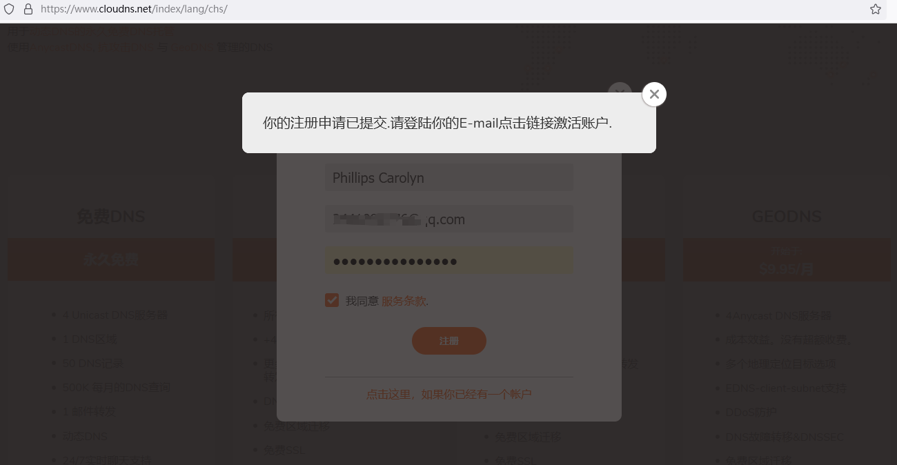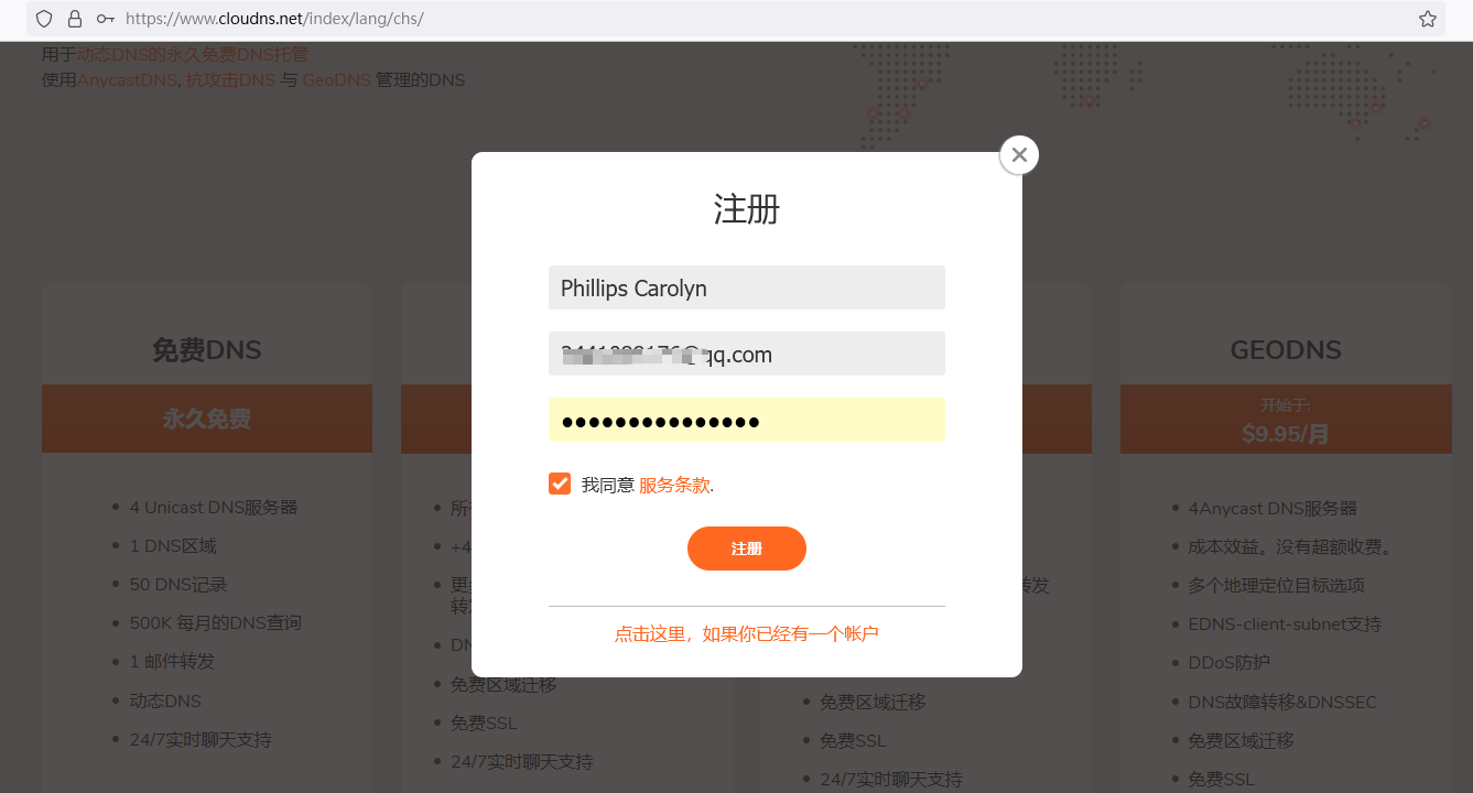 打开https://www.cloudns.net/ 进行注册