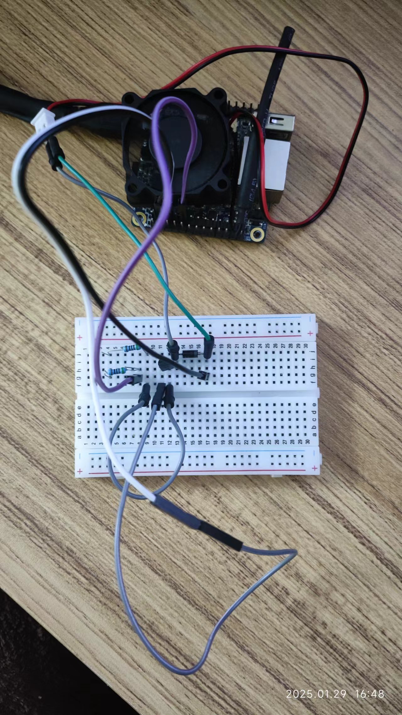 OrangePi Zero只贴了一个散热片,在20多度的室温下运行PiKVM情况下CPU温度有50°C左右,有点高所以需要添加一个风扇。刚好它有很多GPIO口。因此做一个可启停的风扇当温度高于50°C时启动风扇。