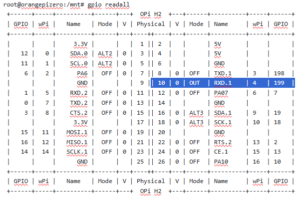 root@orangepizero:/mnt# gpio readall
